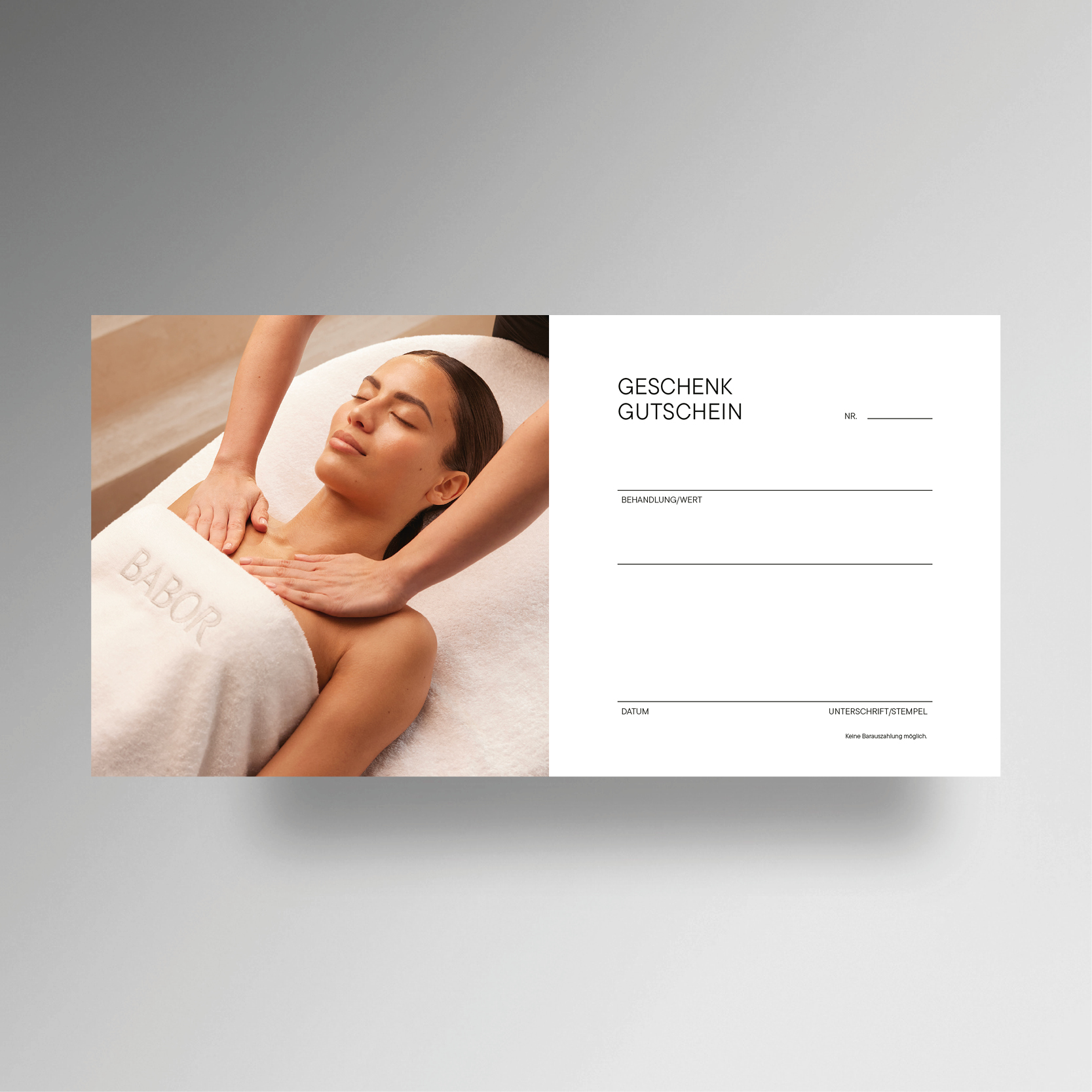Gutschein zum selbst ausfüllen in verschiedenen Optiken. Im Innenteil ist der Gutschein stempelbar. So kannst Du ihn im Handumdrehen mit Deinem Institutsstempel personalisieren. Die Druckdaten laut Ansicht liegen vor und werden bei der Bestellung verwendet.
