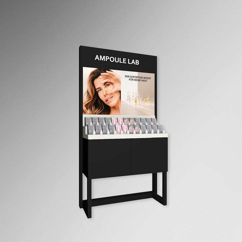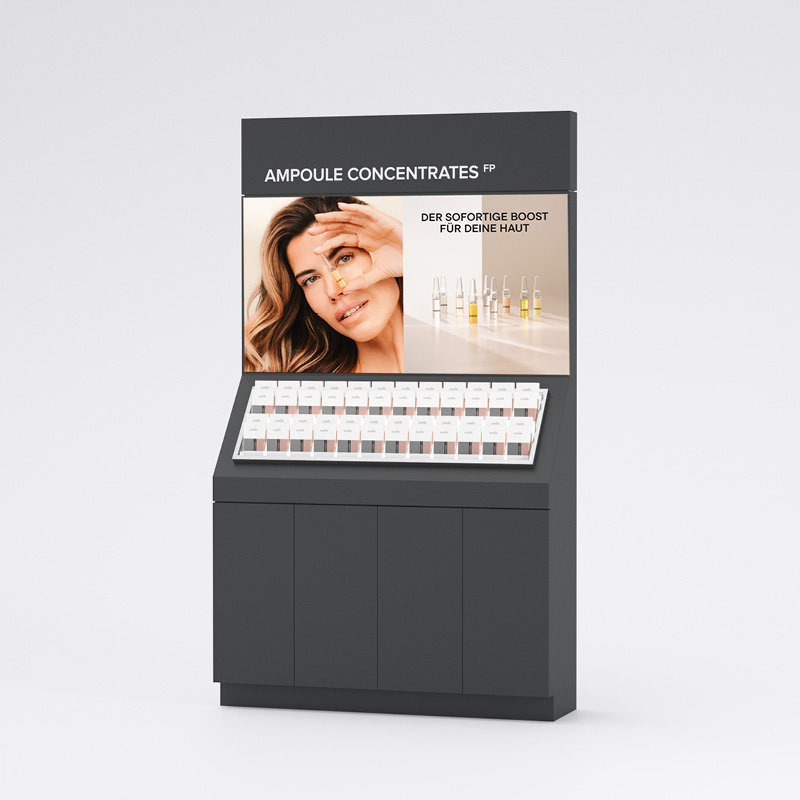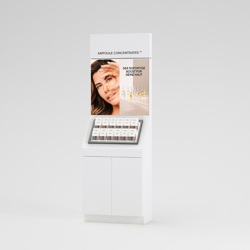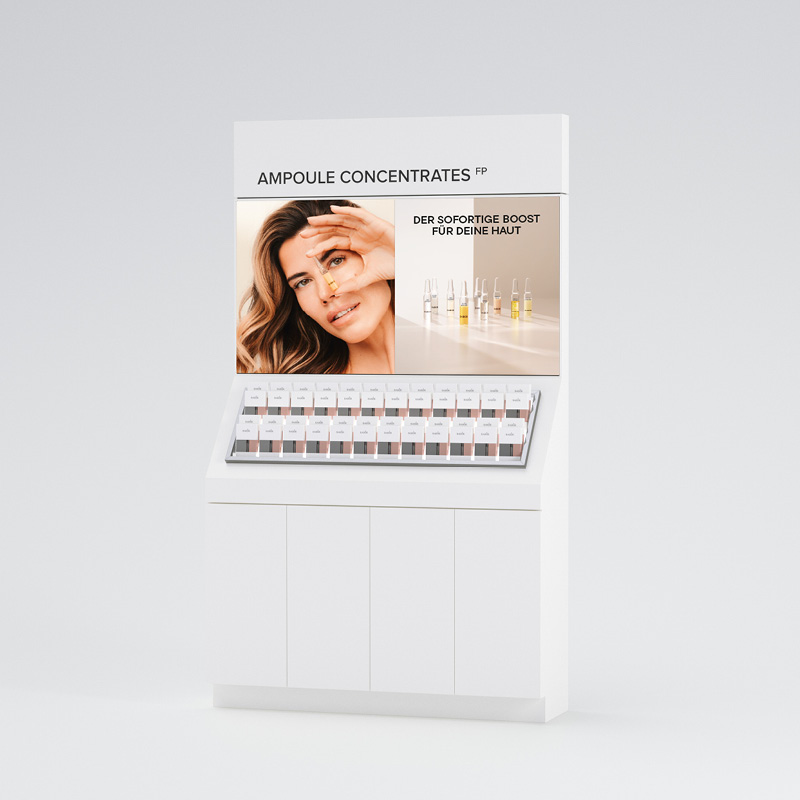 Hochwertiges Visual zum Austausch in der vorhandenen Ampullenbar mit integriertem Smartframe-System. Das vorhandene Visual in der Ampullenbar kann einfach gegen das neue Visual ausgetauscht werden – Voraussetzung: ein vorhandenen Smartframe System und ein Visual mit Kederleiste (siehe Info hier). Die BABOR Möbel sind üblicherweise mit diesem System ausgestattet.